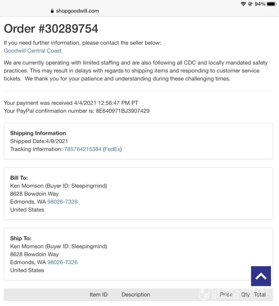 Ken Morrison ph2069001353 text please, FedEx tracking number :[protected] Delivery address 8628 Bowdion Way, Edmonds Wa. 98026
