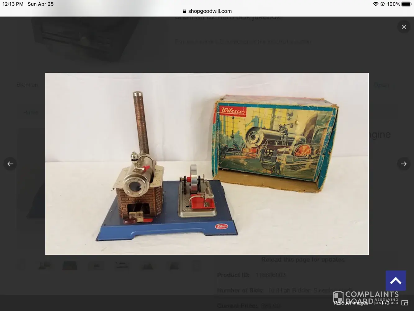 An antique toy Steam engine was purchased from A Salinas California Good Will store for a total of $108. xx.