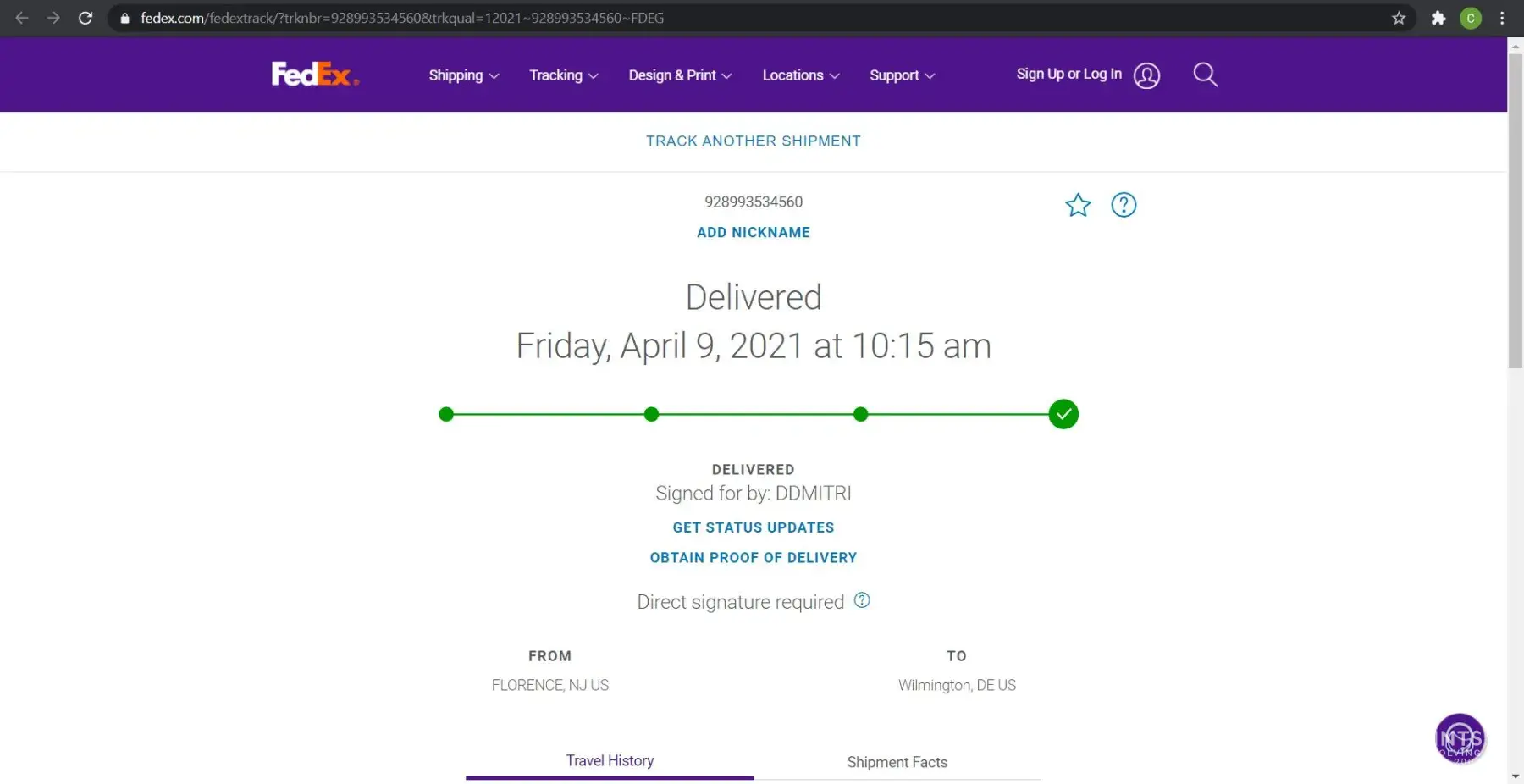 FedEx delivery was claimed to be on the 11th of April 2021 and that the next attempt would be on the 12th of April.