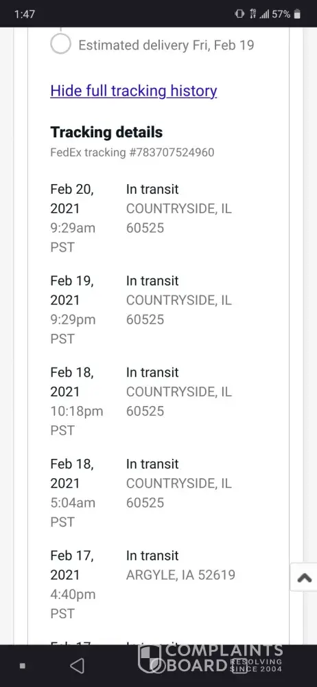 I had a guaranteed delivery of Friday 2/19/21 and still do not have my package. The tracking information has not been updated for 5 days and the package is now 4 days late. Apparently it is sitting in Chicago. I went to their website and it complains of weather, covid, high volumes, and even a more strict border security?