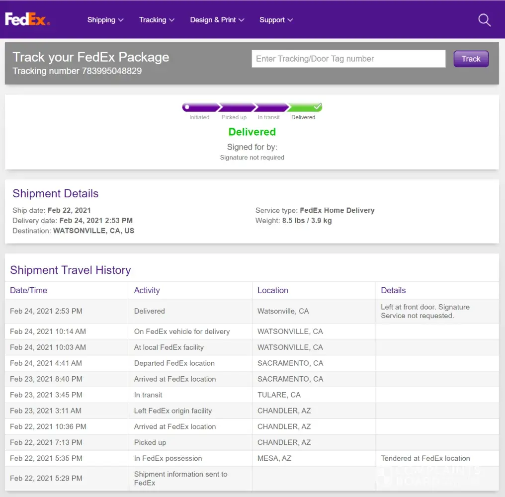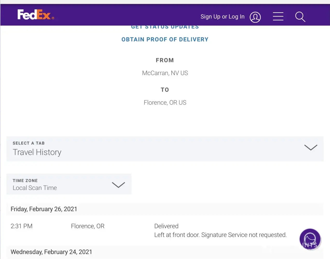 Date/Time of claimed delivery: Feb 24, 2021 at 2:53pm