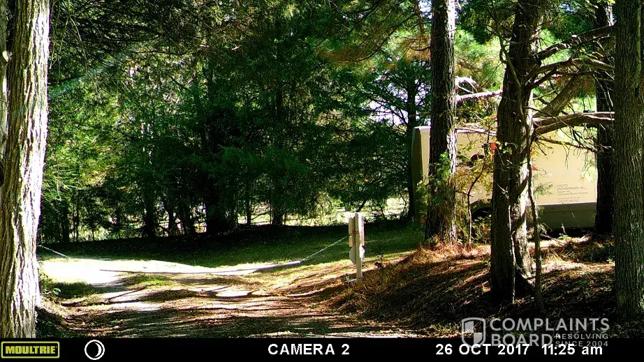 While reviewing my exterior cameras I noticed that a FedEx truck dropped off a package at the chain pulled across my driveway to keep delivery trucks out because there is no room at the end for truck turnarounds. This driver chose to pull up to the chain, get out of the truck drop the package at the "No Delivery Trucks Past this Point" sign, then back up and pulled up into my front lawn and proceeded to turn around on my lawn. He could have simply backed straight out of my driveway at the point before he pulled up onto the lawn. According to the date stamp on the camera this occurred on October 26, 2017. It is operated by Choto Enterprises of Clayton, truck #405367. He violated our trust in delivery drivers by his action because it seems to have been an intentional act due to the sign being posted. Below that sign is another one notifying that the premises is monitored by cameras, but I guess he felt that there was no camera.