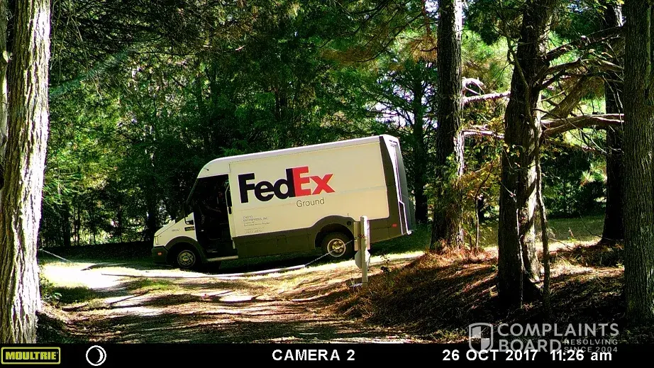 This is not the first time this has happened with FedEx. There has food products, clothing, and breakables, as well as expensive items left at gate(s) or thrown over fence. his is the furthest afield I have had to go to retrieve items that are sent via FedEx.