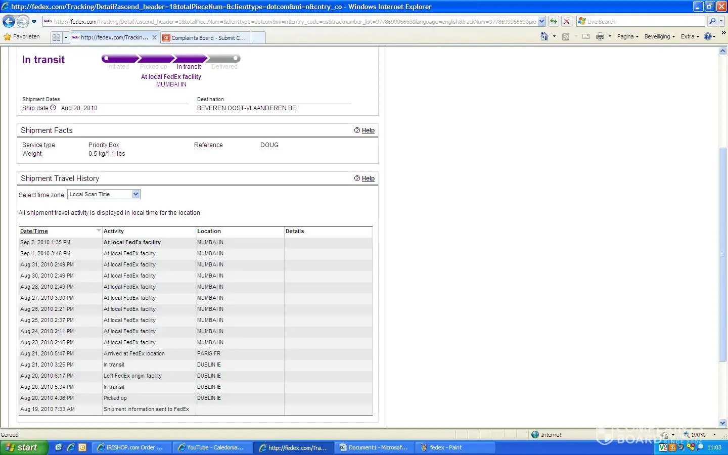 I think there is a major problem with Fedex in Belgium. They failed to pick up a package I already paid for, I ended up using another company and its been 2 months now and they have not refunded me. Their customer service representatives are extremely slow and not very knowledgeable on many issues concerning the services they offer, particularly financial services!