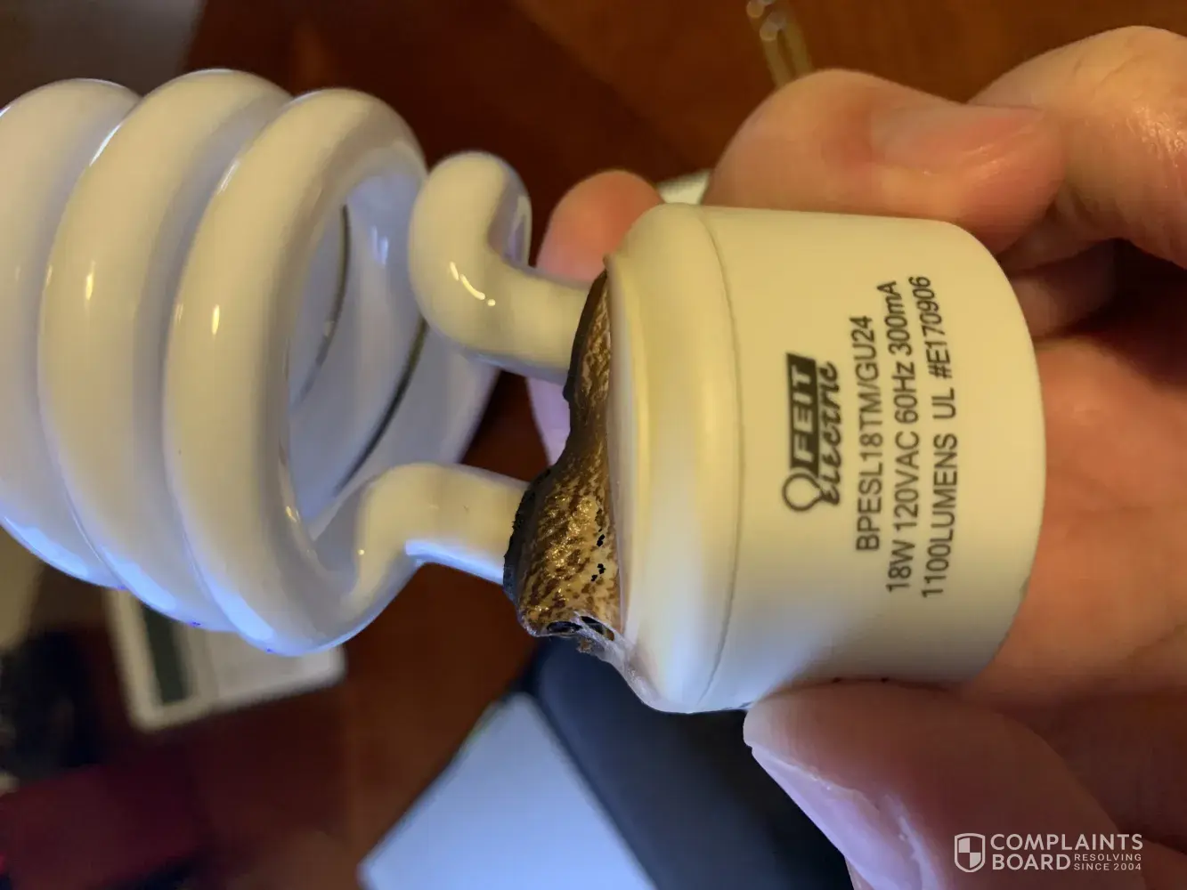 They say the complaint was void because the customer refused to talk to them to resolve the issue. Well it looks like their resolution is to just play stupid and replacing bulbs with more faulty bulbs. Some people are smart enough to not waste their time. Why companies think they can treat people like this is beyond comprehension, even a little kid won't let you burn him more than twice.