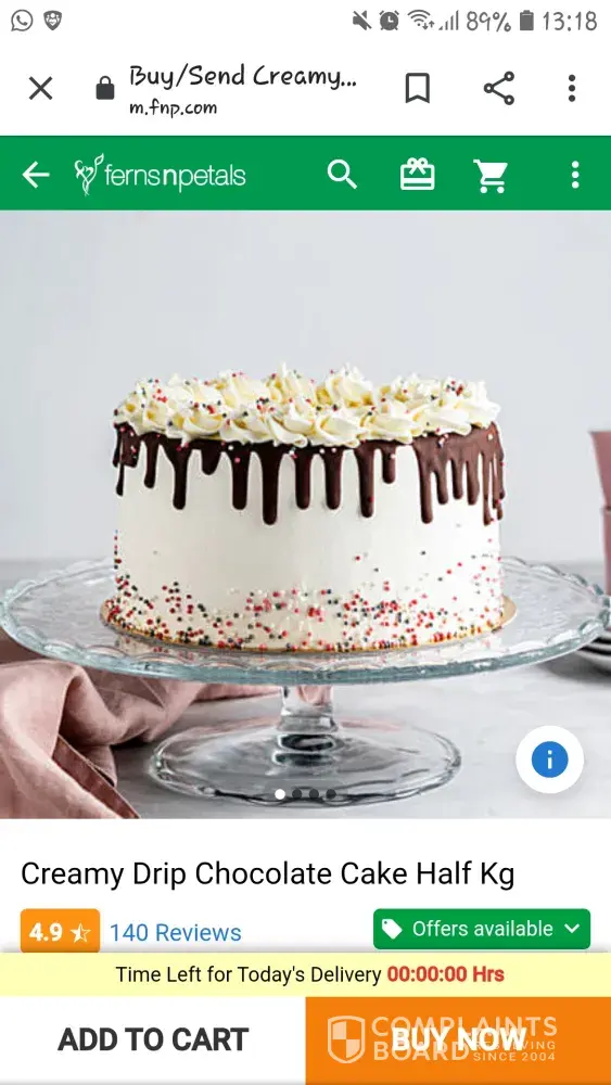 Dated 07.03.2020, 11:24am. I have made payment of one cake on Ferns n petals on dated 07.03.2020 for 1118 Rs.