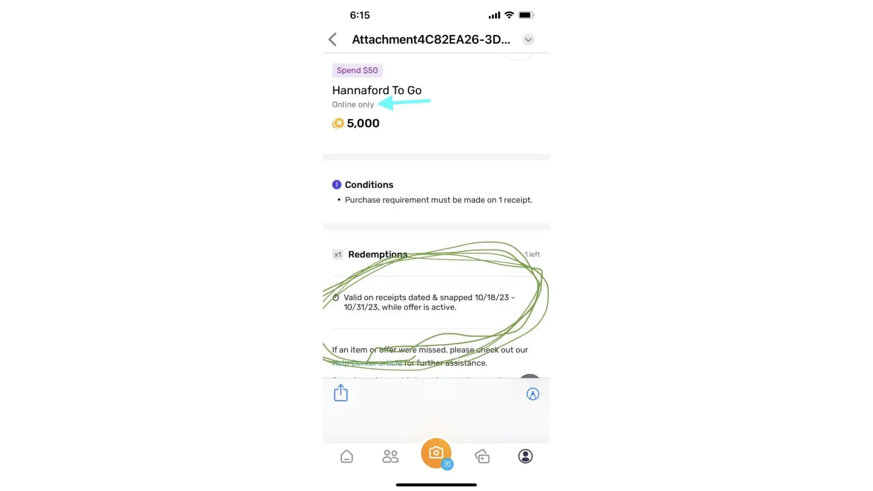 I use the Fetch App to receive points if I buy products & scan receipts on the app. My local market, has a promotion where I would receive 5000 points for using their online “to go†feature. I ordered $80.00 in groceries, online and had it delivered within the promotion time. I scan the receipt and I received 35 points.