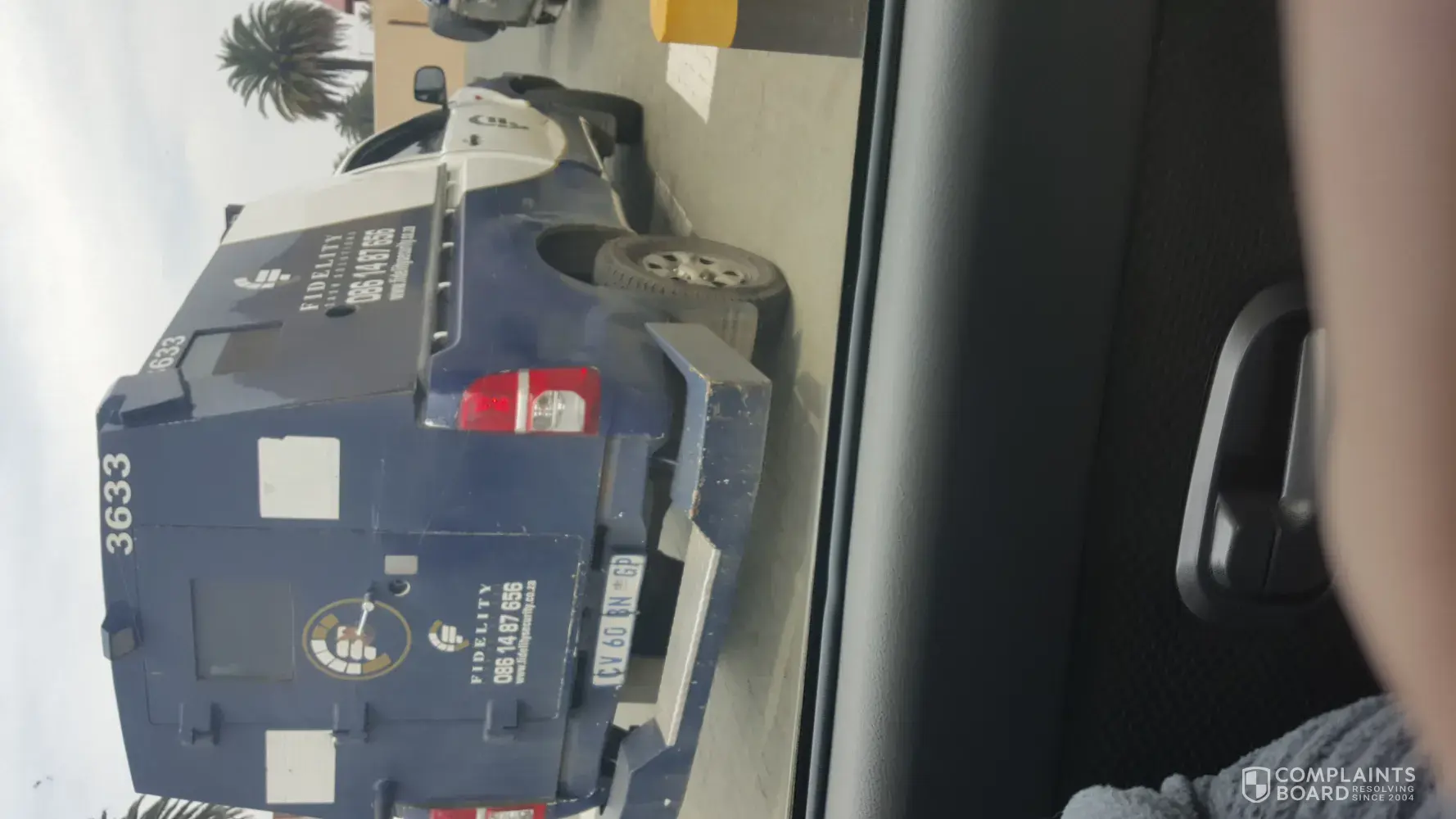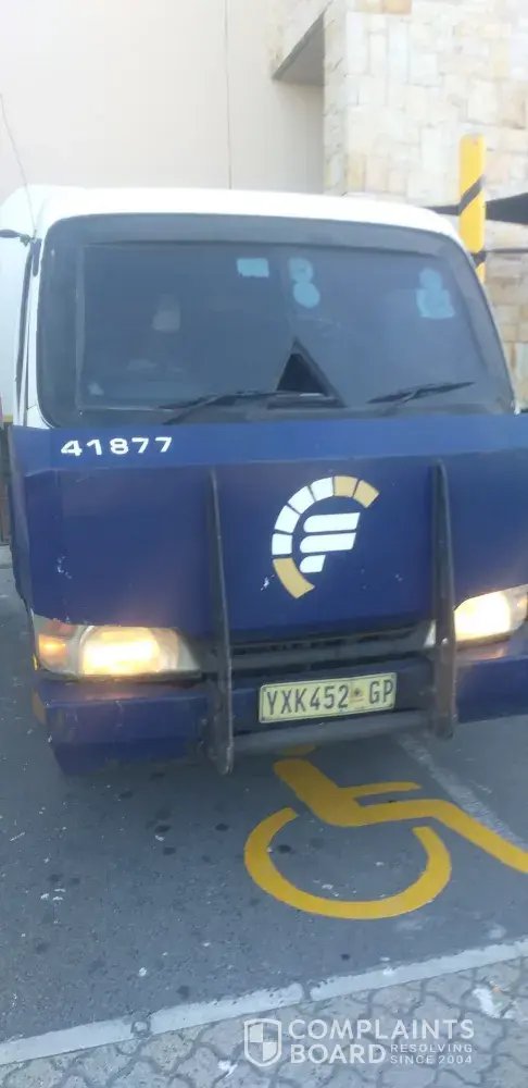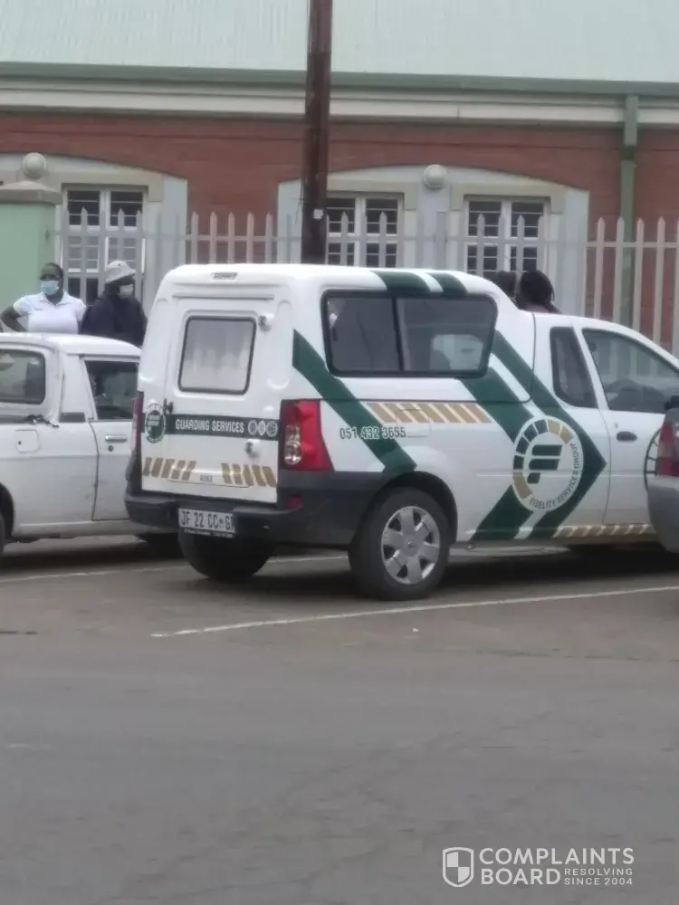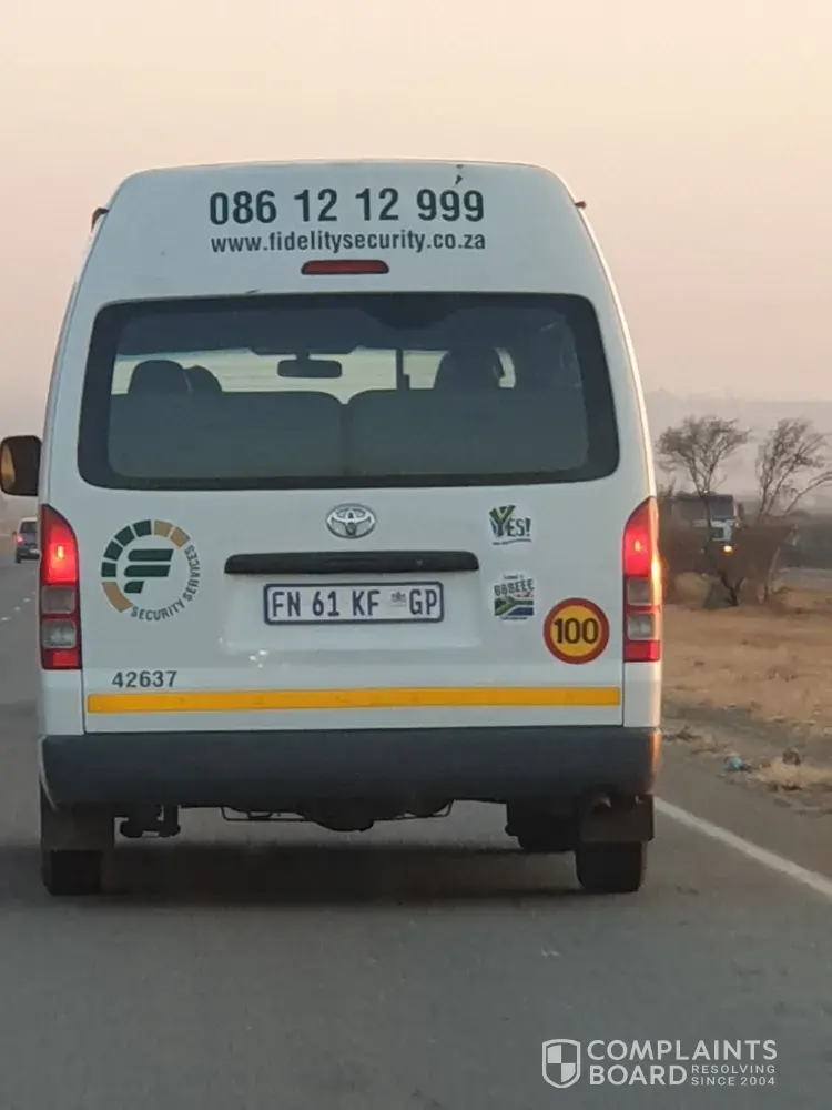 I was standing at home affairs paarl at about 14h10 when a fedility guard van reversed in the parking area. We were standing in marked lines in the parking. The driver reversed and almost bumped a lady and myself behind the van. We both moved out of the way and as the driver reversed he shouted at me, asking me what the [censored] are you looking at and what is your [censored]en problem...In wich I took a pick of the van's number plate and just walked away.