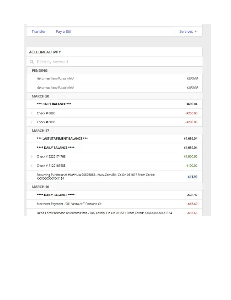 On March 17, 2017 I deposited $1000.00 into my personal checking account., [protected]. On March 20, 20147 I wrote 2 checks on that account, one for $250.00 and one for $200.00. On March 21, 2017, I logged in to see that they returned both of those checks and left my deposit still pending!