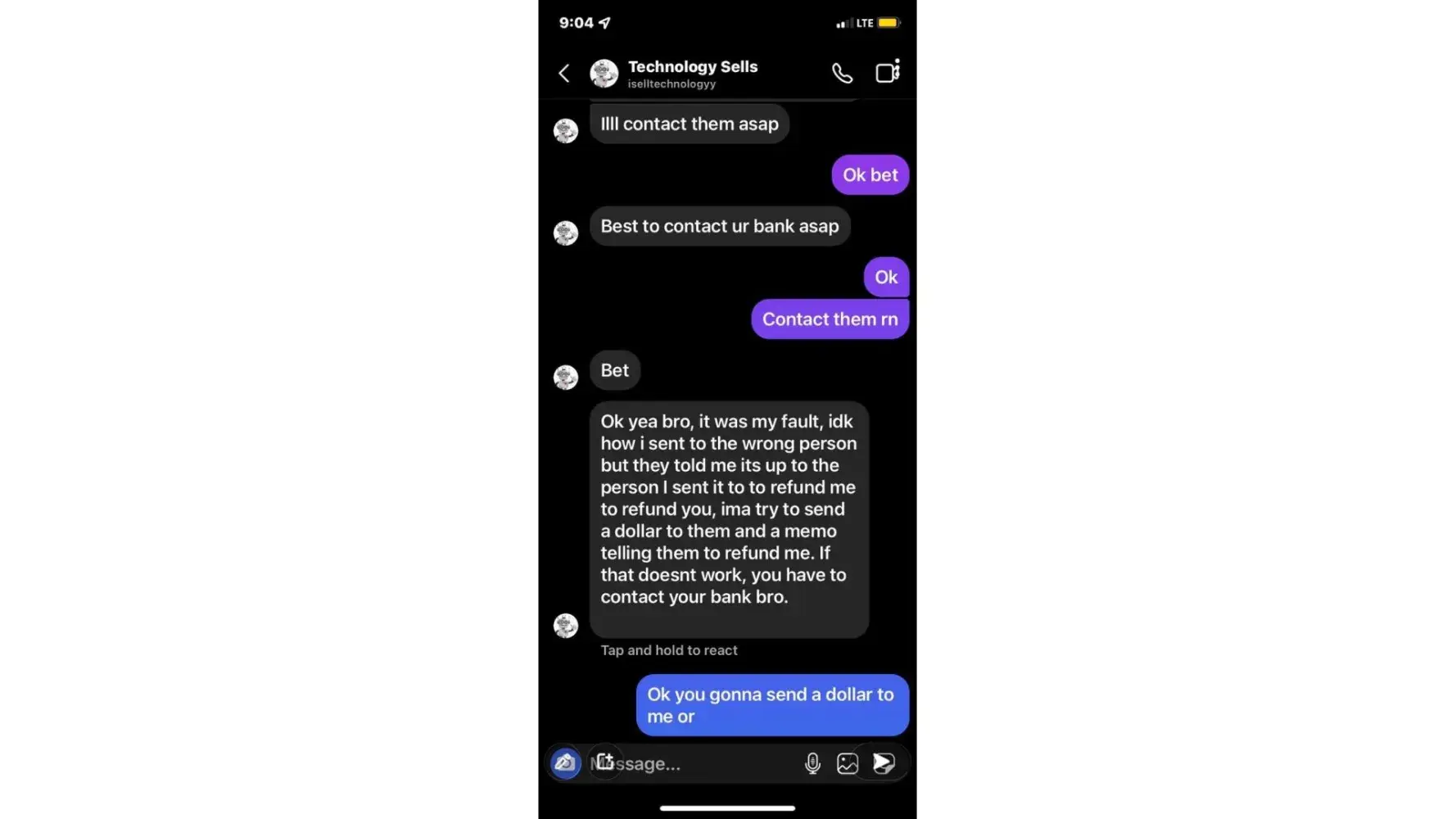Not returning my money after Investigation