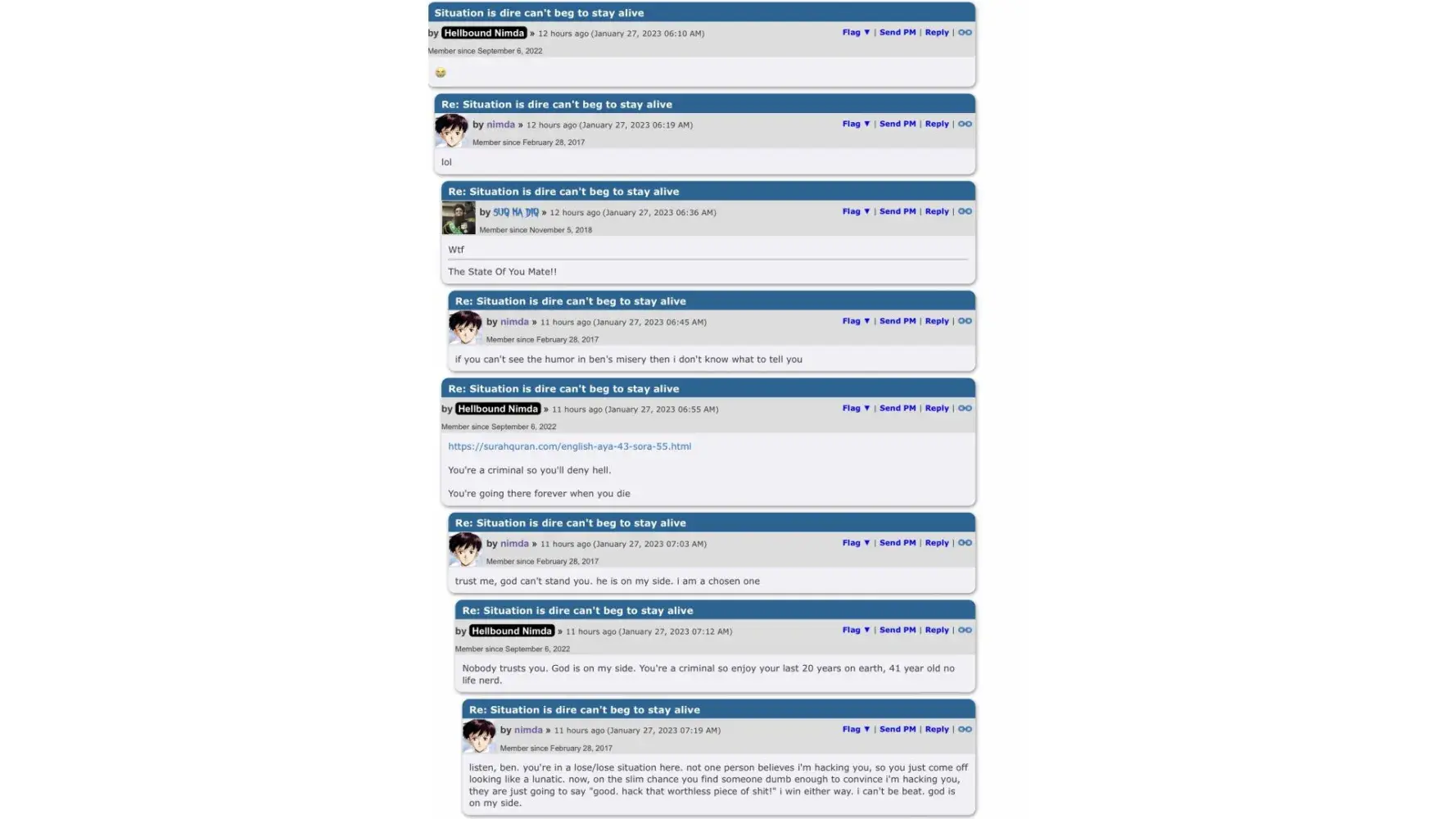 I was threatened by the administrator, Nimda, to be killed by a gun.