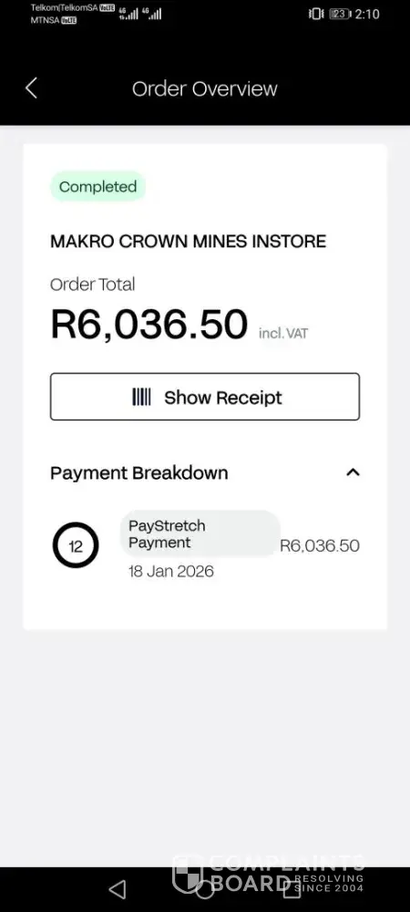 I am at makro and I used paystretch to pay, on my payjustnow app it approved but on the till it canceled