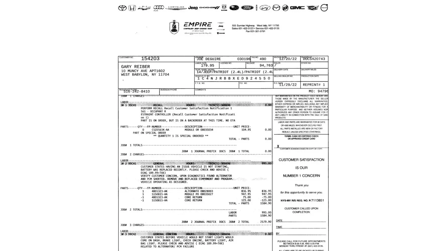 Customer Details: Vehicle Details: