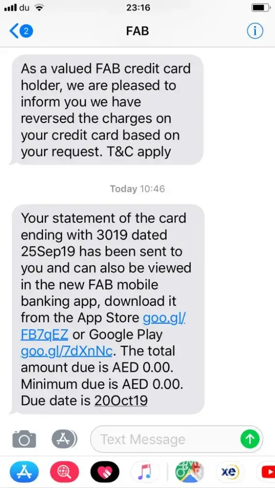 Now I have started receiving messages and statement again from FAB to say i have outstanding amount on the credit card. Also, the Etihad Credit Bureau it is showing that i have outstanding amount on this credit card.