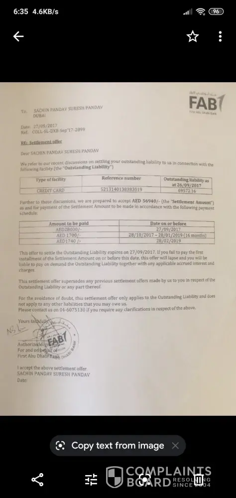 Everyone who deals with FGB be it credit card or loan is suffering. To late for us but it is better to spread the message that if this bank calls you and offers you a CC or loan just RUN! RUN! in the opposite direction. I have friends working in reputable banks and even they tell me never deal with this bank they are the worst.