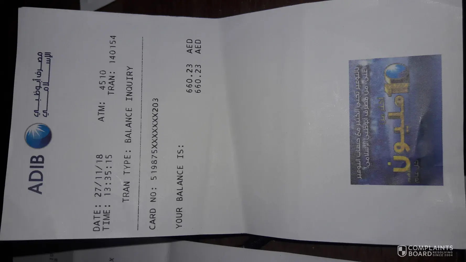 On 27.11.18 I was trying to get money from ATM. However 2000 AED went back to ATM and were debited from my account without i having it. A lot of time trying call to the bank and get money back, but all operators are saying that it is still under process. Promising to arrange call back, and it never happend. I am very dissapointed and dont know what i should do.