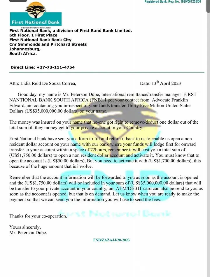 First National Bank [FNB] South Africa Fraudulence activity on FNB account