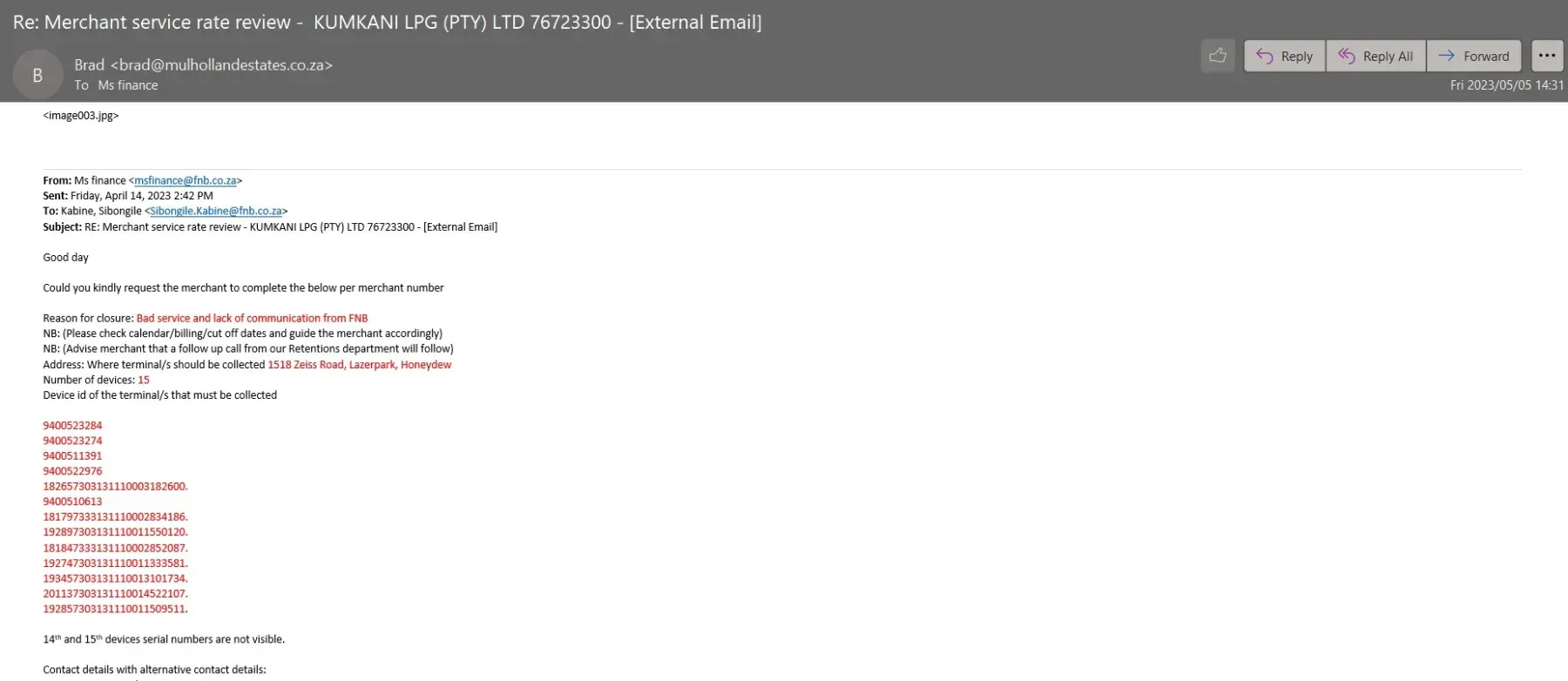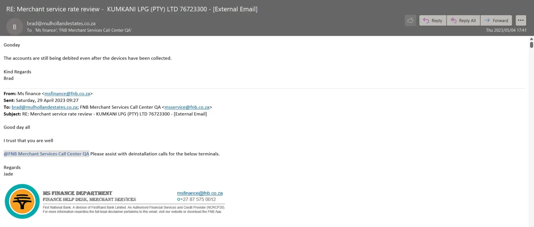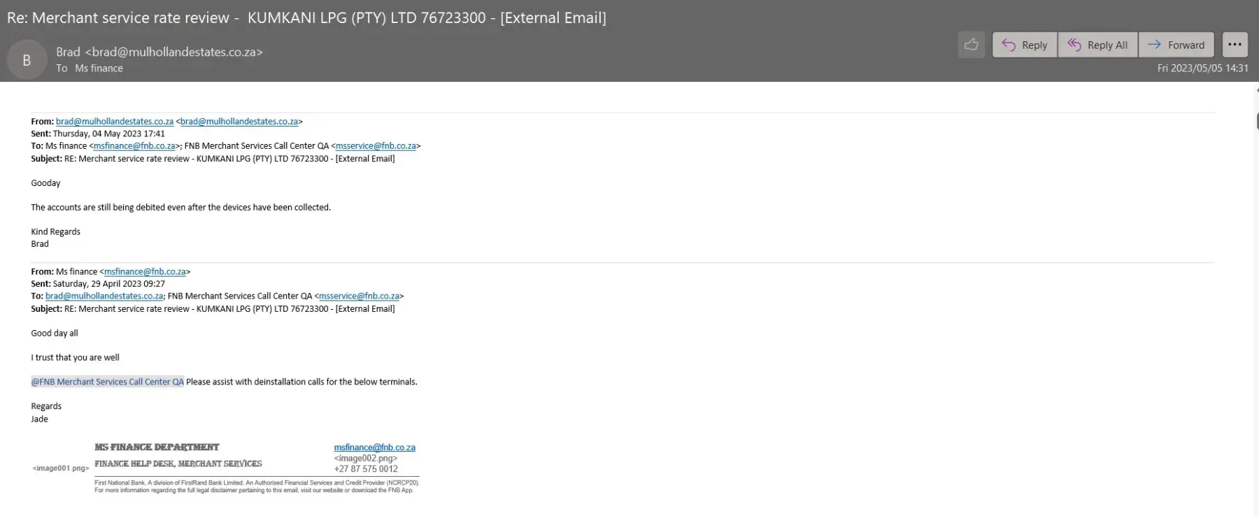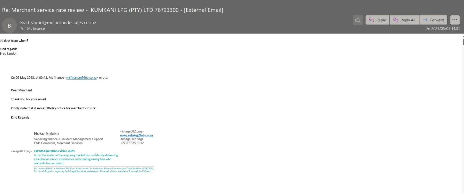 First National Bank [FNB] South Africa My business account closure from FNB