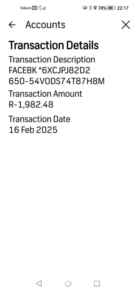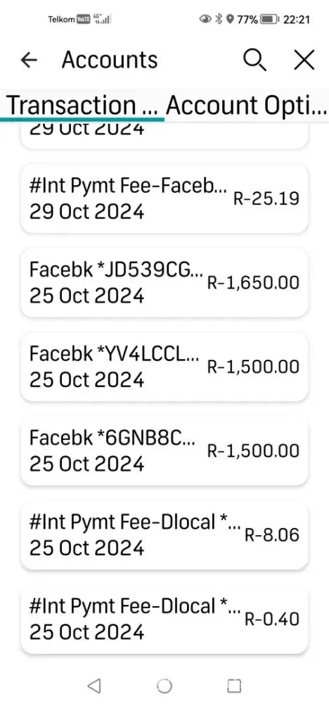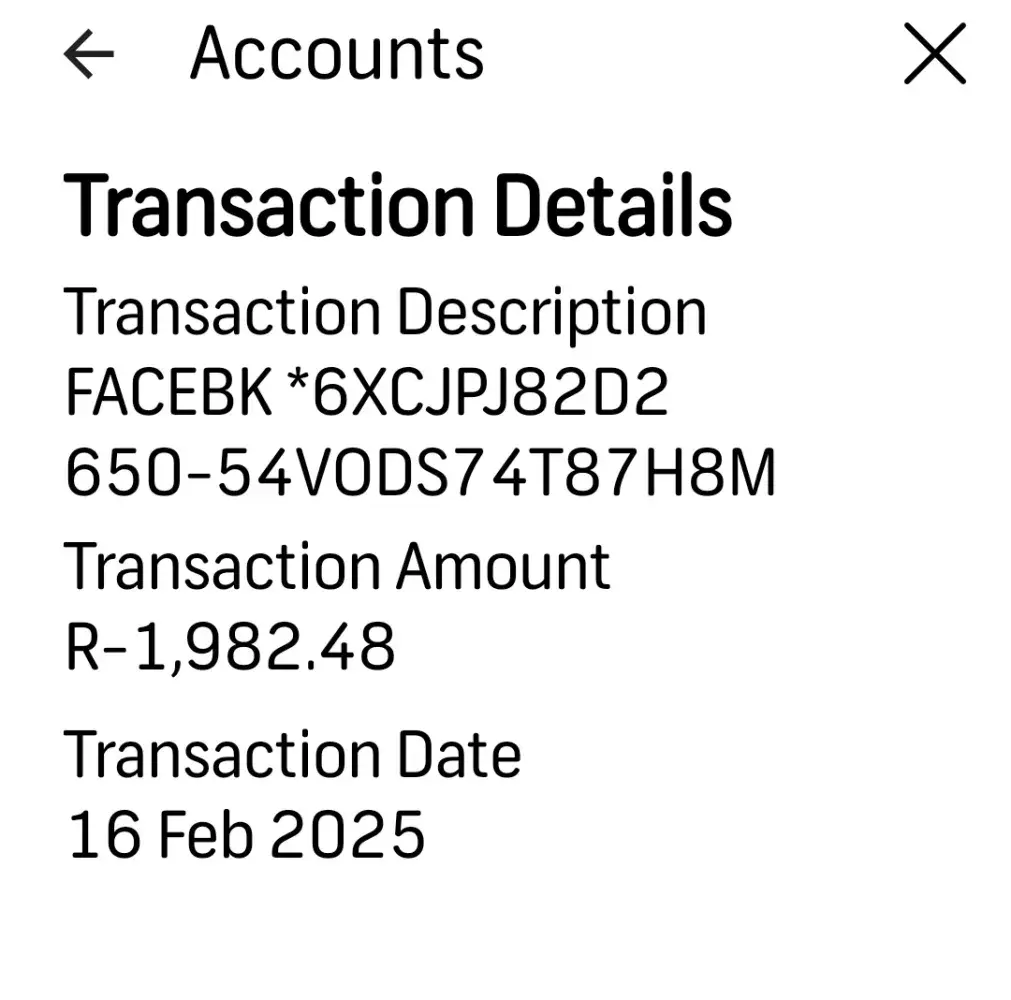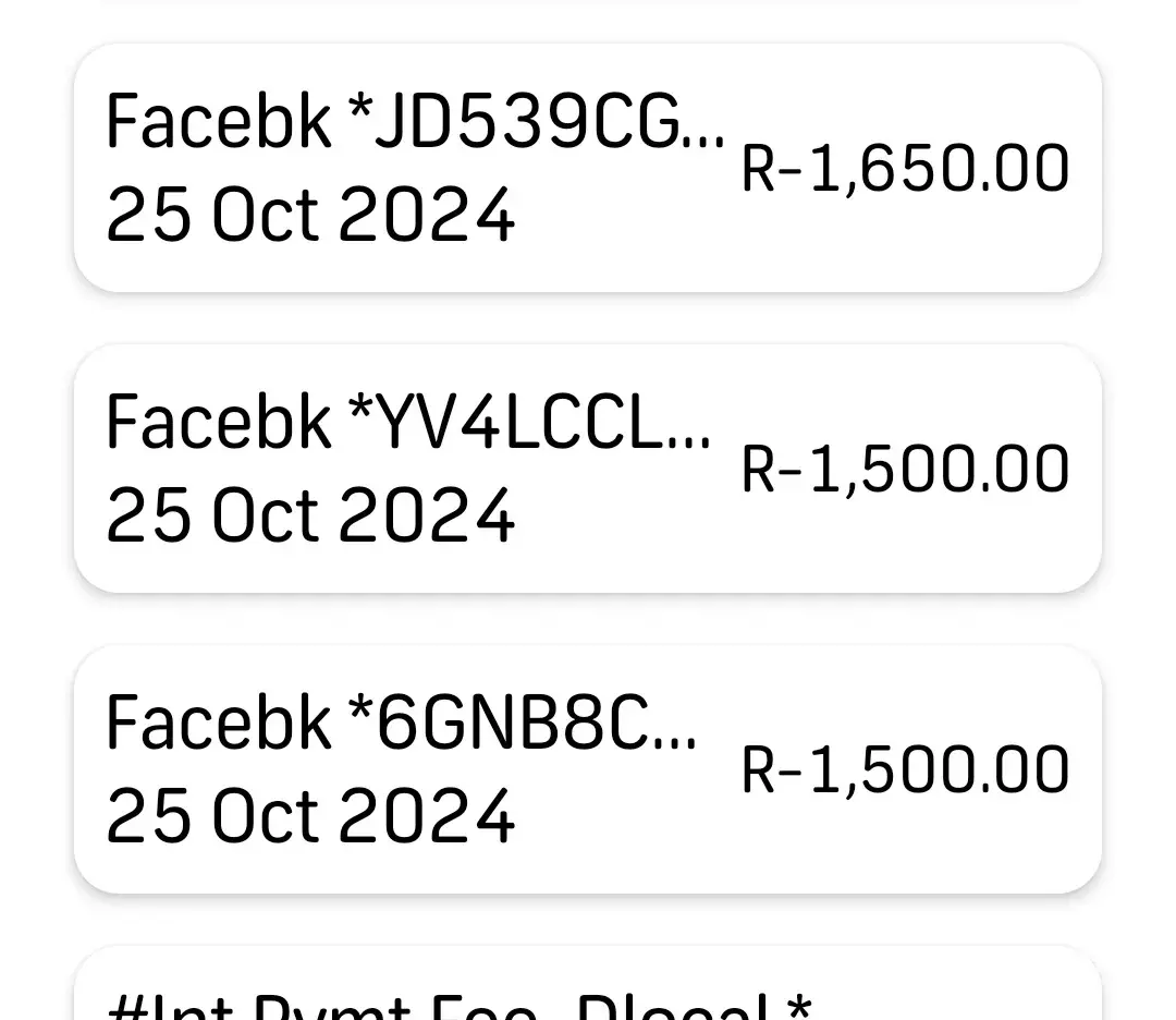 Several deductions have been taken from my credit card accounts from a Facebook account that I don't have access to. The total amount is more than R5000. FNB has informed me that the investigation is completed after a week and that nothing can be done about it. My Virtual card requires a new CCV no every time it is used, but no information or proof that I...