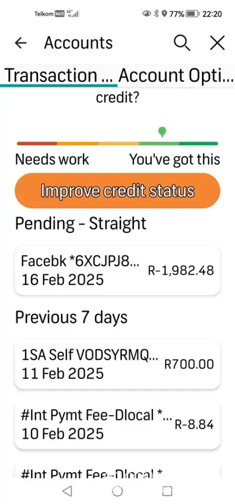 During Covid, when most of us were suffering, they phone me to say my overdraft was going to be dropped from R100K for my business to R60K, just when you probably needed most. No paper work, nothing. They said that to help and be fair, they would drop it R 1700 per month, which was what 2 years? Well, it never stopped. Today is R 28600, it never stopped and no communication.