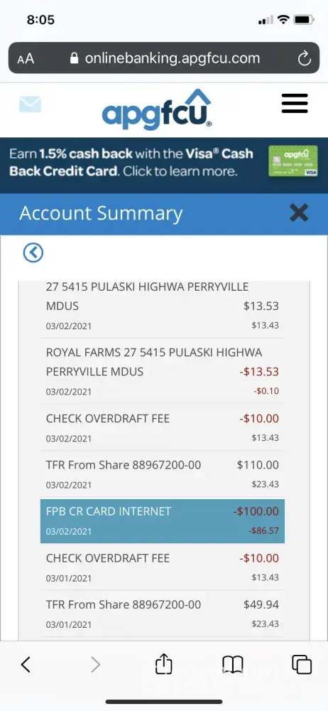 INTERNET FPb CR CARDWEB [protected] Withdrew funds from my bb&T accounts