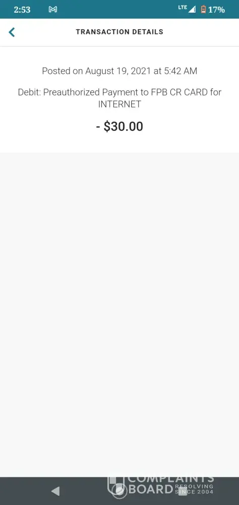 "Pre-authorized payment to FPB CR CARD for INTERNET"???