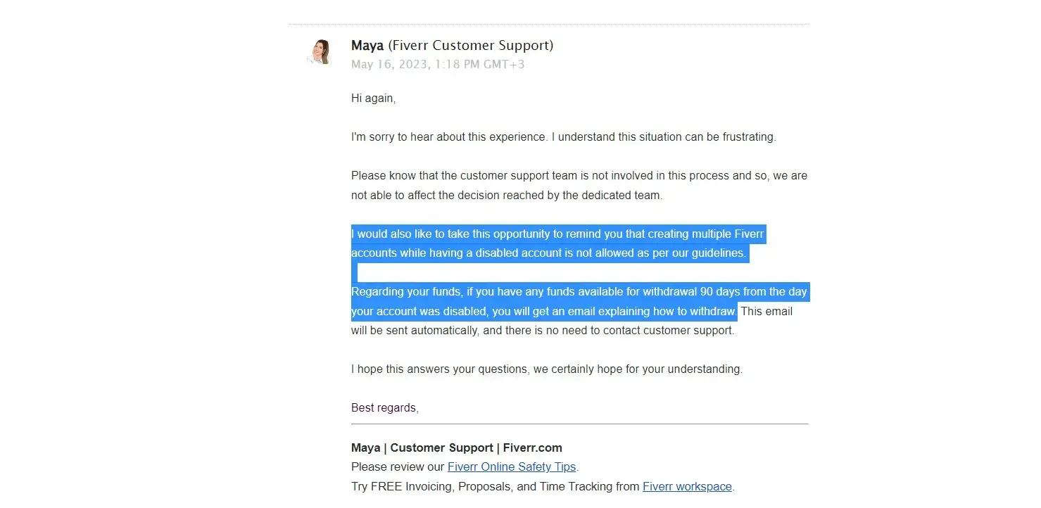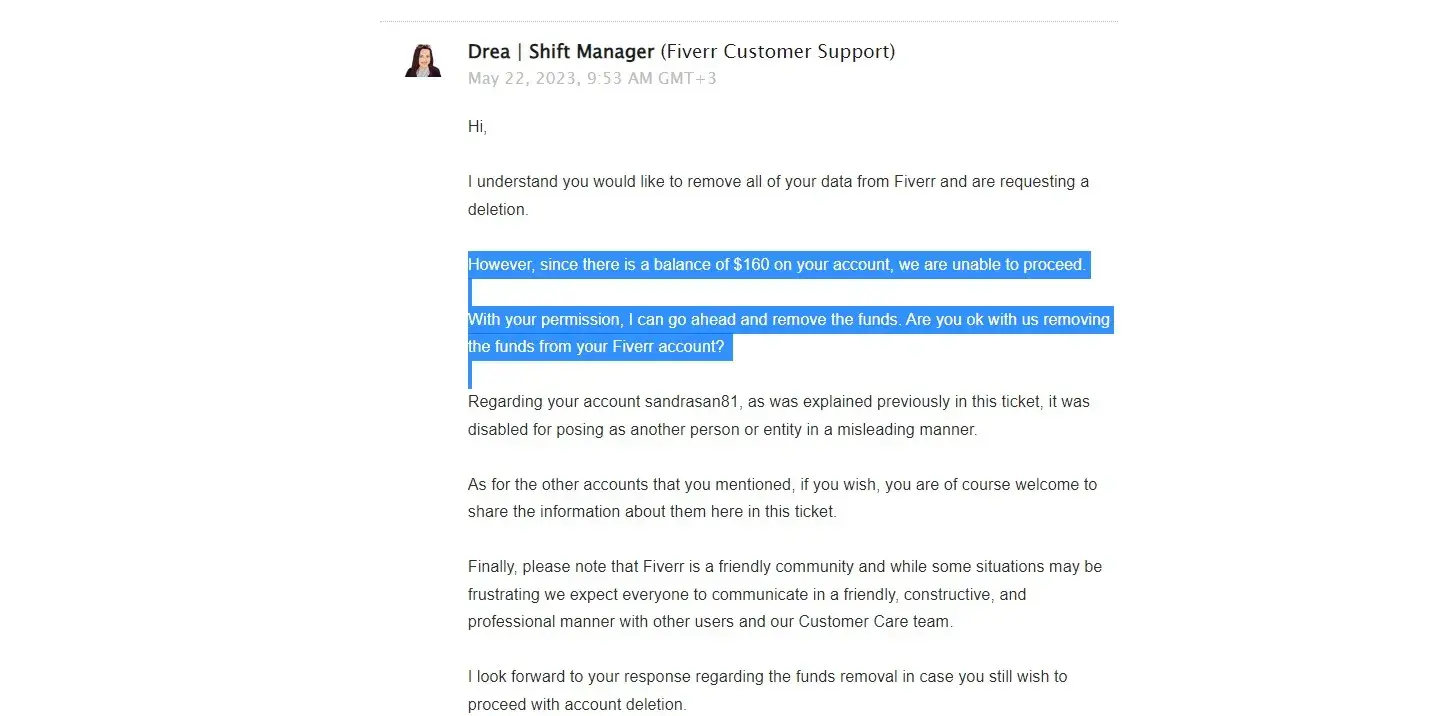 My account was flagged for violating our Terms of Service, it is permanently disabled and cannot be reinstated. Fiverr has zero respect for or loyalty to the sellers! Absolutely unethical platform. Simply exploiting people. Fiverr banned my account 1 day before I withdraw my funds (160$). Today they ask me to delete the profile permanently. Didn't answer the questions I ask, and canceled the account for no reason, and no explanation, that is miserable! They didn't have proof that I have another account on Fiverr. I didn't cheat or lie or stole or comment on another profile or do a rating... they are just being rude and unprofessional. They take fees for tips the sellers give to the buyers Fiverr is miserable!