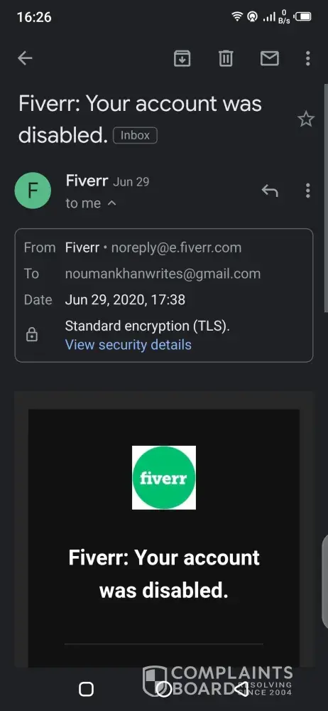 I received the following e mail to [protected]@gmail.com. I strongly object to the contents as I have onlyn ever contacted one person on fiverr and have nmever spoken to anyone else or communicated with anyone else outside of your organisation. Please advise what I did wrong asap