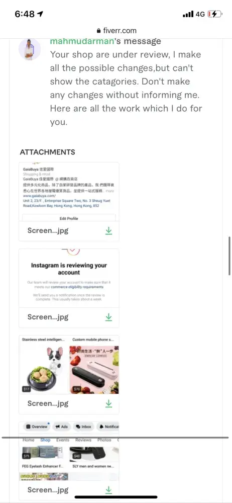 All this proof was sent to Fiverr, I was reassured if I submitted proof of completion I'd be compliant, however they still cancelled my order without consent.