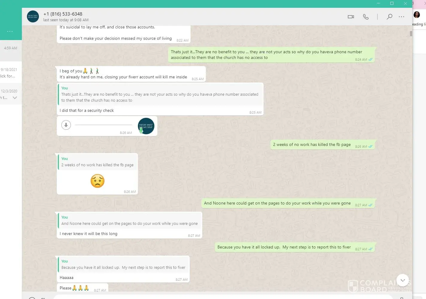 Furthermore, Fiverr has deleted all correspondence and proof of the service, which is concealing evidence and not permitted.