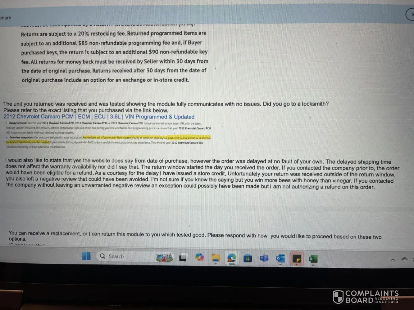 They sent me a junk engine control module for my 2013 Camaro LS V6.