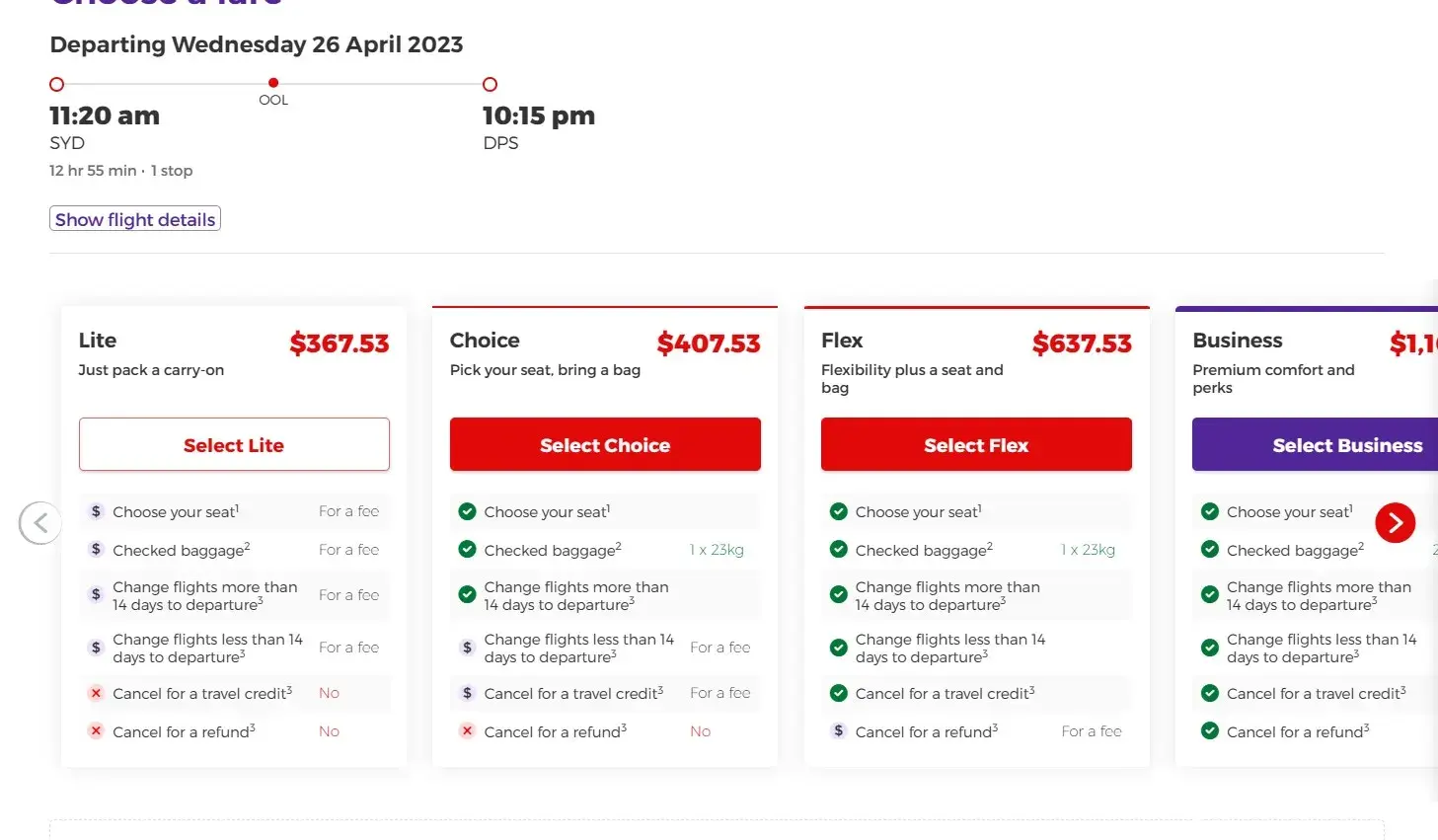 Desired outcome: I would like to book a flight from Sydney to Denpasar on 26 Apr 2023, using my Travel Agency to assist redeeming the credits, the focus is on the cheapest option, and I am 100% flexible with time and dates.