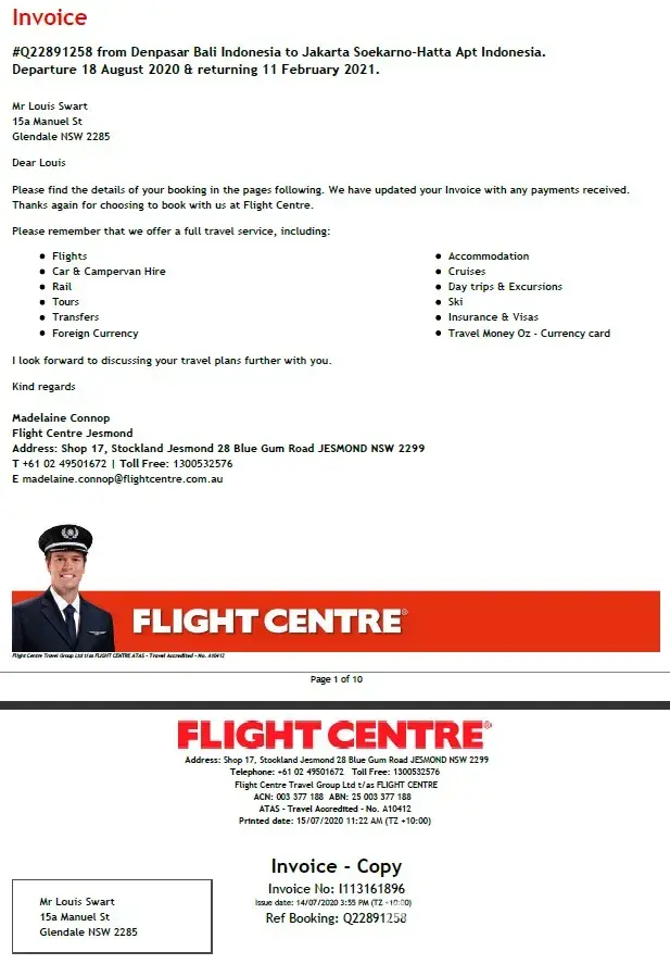 I went to flight centre Jesmond during covid, booked multiple flights, one was canceled.