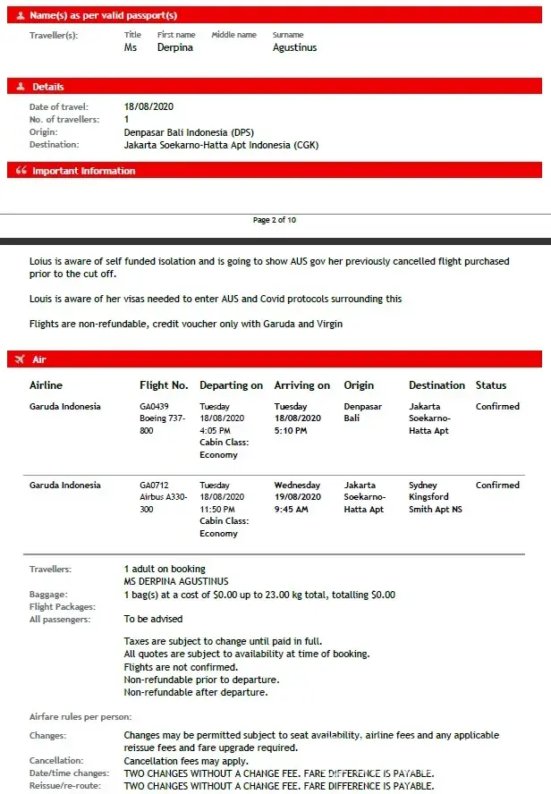 We have been extremely disappointed with the service that we did not receive when we needed it whilst overseas, hence resulting in the cancellation. We do not recommend this agency to anyone, it is much easier and cheaper to book flights yourself as you will not get the assistance needed when you do need it anyway.