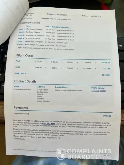 Desired outcome: A full refund and a apology for the distress caused as we are pensioner what to go see the two new grandchildren