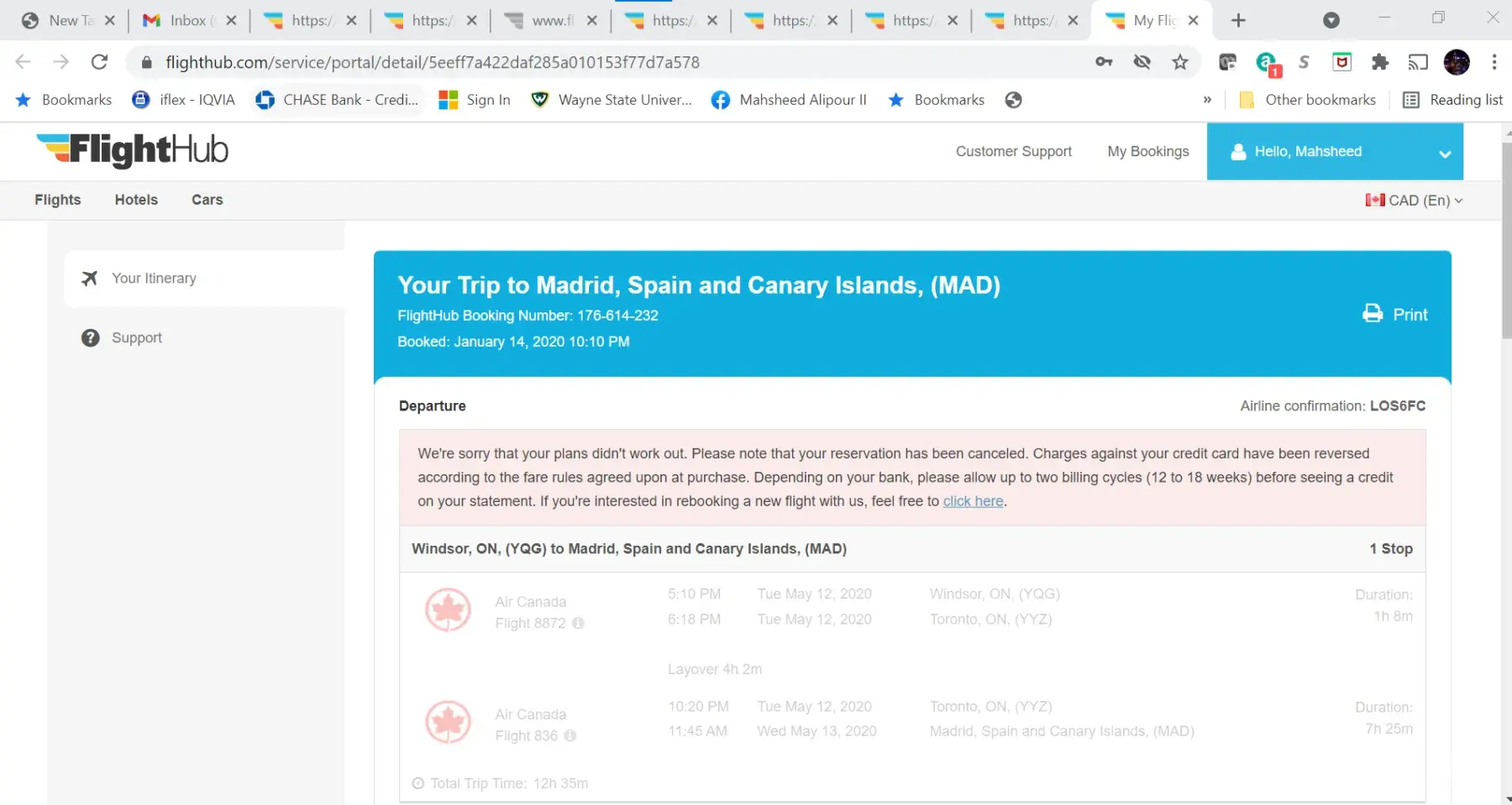 I called Flighthub to cancel my booking reservations on 28-May-2020 due to COVID-19 lockdown.