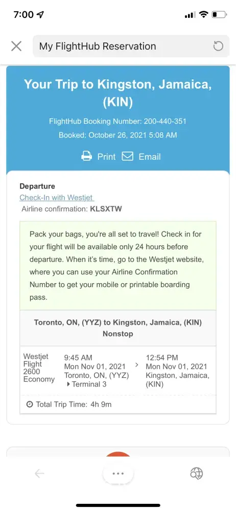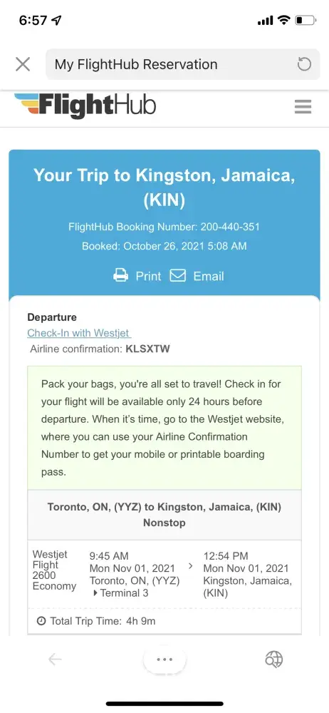 Book flight with insurance through flighthub [protected]) to Jamaica with westjet (KLSXTW) under Dwayne Simpson.