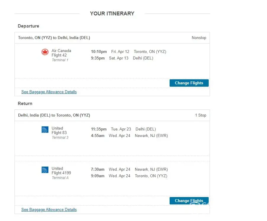 I had reserved on April 9, a round-trip Montreal to San Francisco and had put the following dates while reserving: