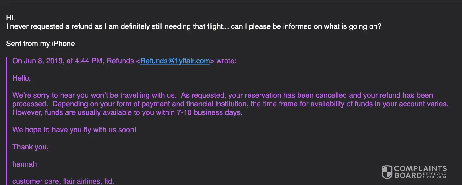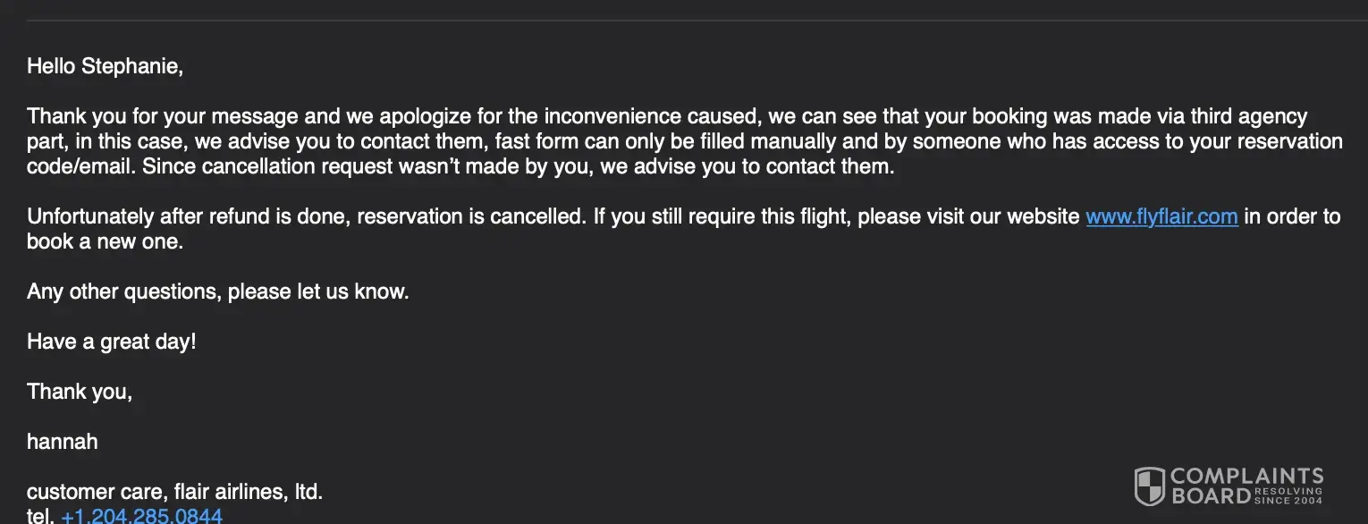 Now, I am in Banff and I get an email saying my flight has been cancelled out of Calgary. I call because I am sure there is a mistake and flair says I need to call flight hub because it was them who cancelled it on me. I called flight hub at 1 in the morning absolutely stressing out as I am not trapped 1000's of km from my home. The first person rudely brushed me off and said "we don't accept debit which is what you paid with" even though they had taken the payment and sent confirmation?!?! He also said he would "help me out" and rebook another flight through them and that my debit card would be fine. OBVIOUS SCAM. Flights were not triple the cost as it was the day before I needed to leave. I ended up missing a days of work, spending triple the price (through a different airline of course) and losing sleep the entire rest of my internship. I am a student who was lucky enough to receive an amazing internship opportunity at a world renown festival and this company absolutely ruined my experience by trying to scam extra money out of me. DO NOT BOOK WITH FLIGHTHUB.
