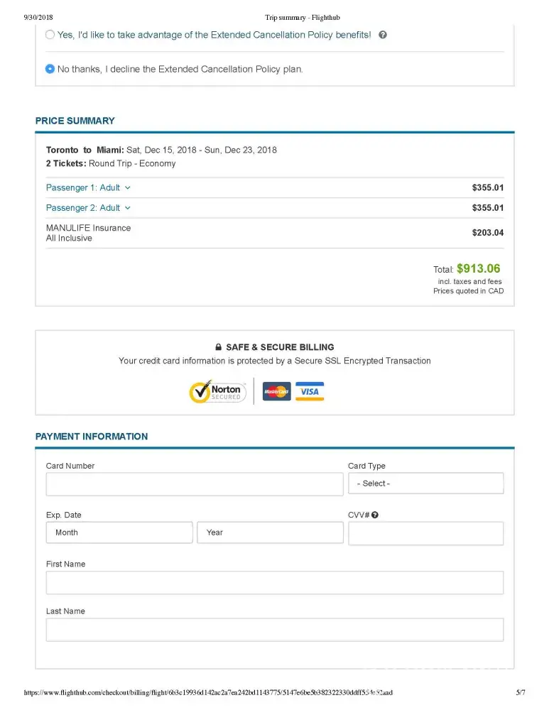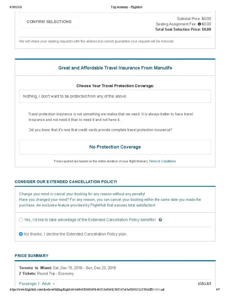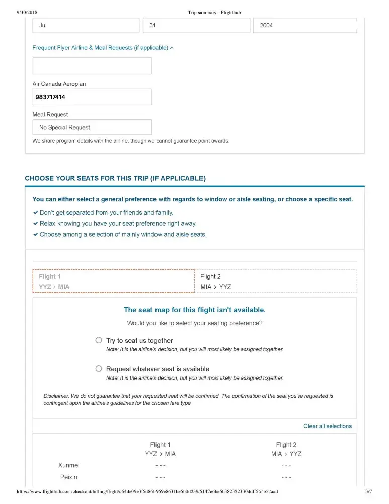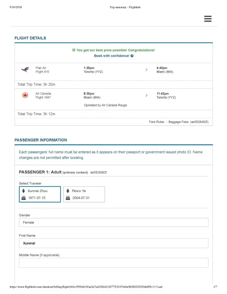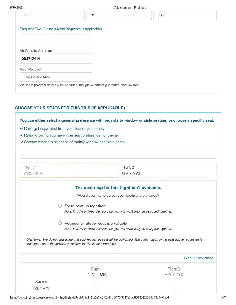 Today, when I was trying to book my Christmas trip tickets from Toronto to Miami. A very strange and unpleasant problem incurred, which I would like to draw your attention to it.