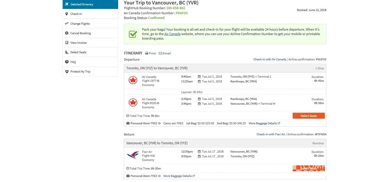 this is Diana mando I booked a flight through flight hub on June 12th, 2018