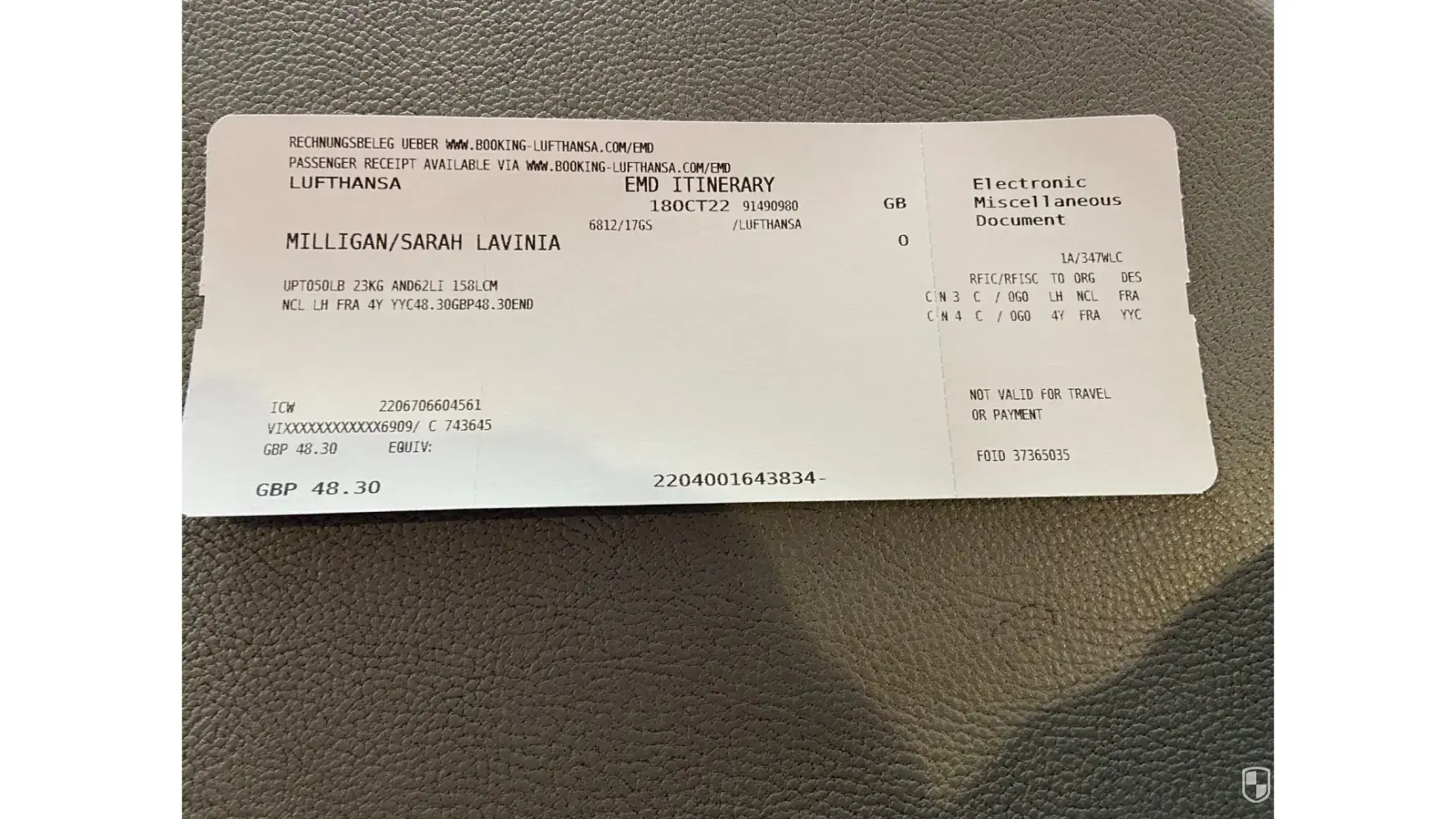 Bought Airline tickets from Flighthub.ca. When I booked I believed I was buying Economy tickets and that they included one checked in case up to 23 kilos. This was confirmed on my receipt at time of purchase. When I came to travel they wanted $75 each way to check in a case. I was told Lufthansa had me down as Economy LIGHT. I did not knowingly book Economy Light as that was never mentioned at time of booking and is at odds with what my receipt said which was Economy and one free checked in piece of main luggage up to 23 kilos included along with hand luggage up to 8 kilos. Tried messaging Flighhub and they just keep saying I bought Eco Light but my receipt says economy as mentioned. This is fraud, misleading customers. I'd like a refund for the $150 they charged me for my case at the airports on outward and inbound journeys.