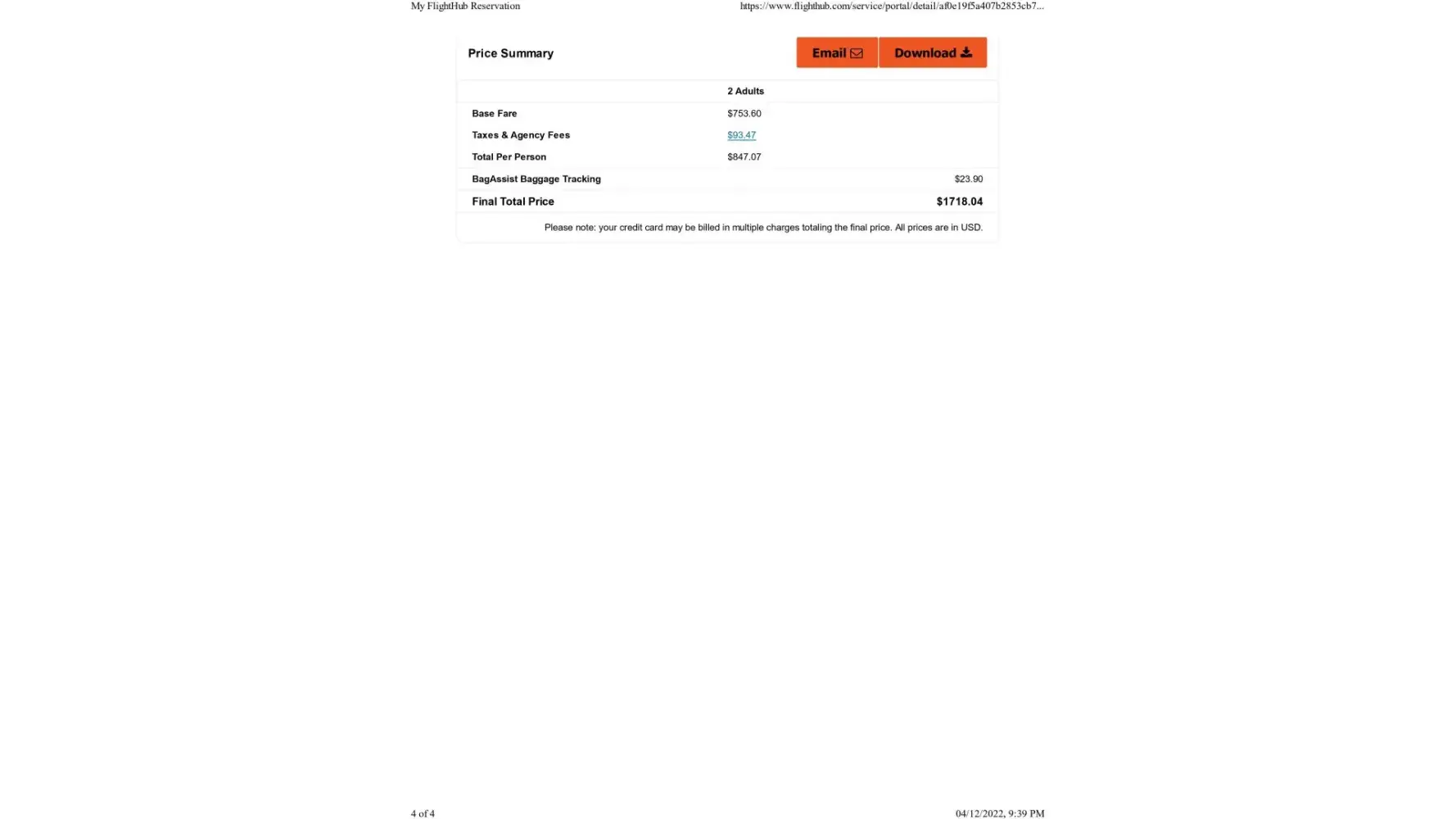 2. I paid for cancellation insurance at the time of booking and was charged $108.49. (I received an email from Flighthub confirming the full charge of $831.75