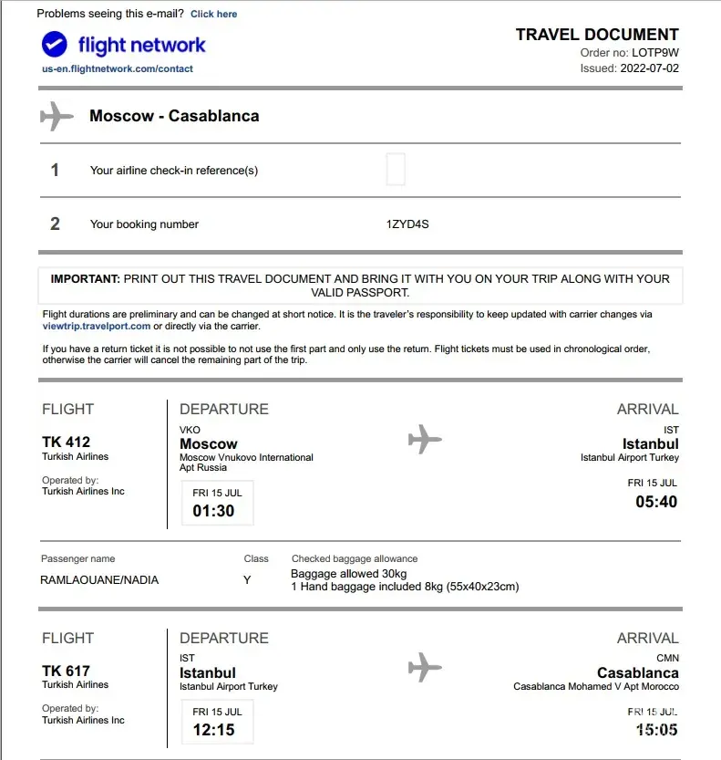 I had the same problem with them, I booked a ticket for my niece but their system made errors on purpose, I canceled the ticket but they didn't even answer my phone, I canceled the ticket at the company airline turkey but flight network confirms to me by message that they will not refund my money