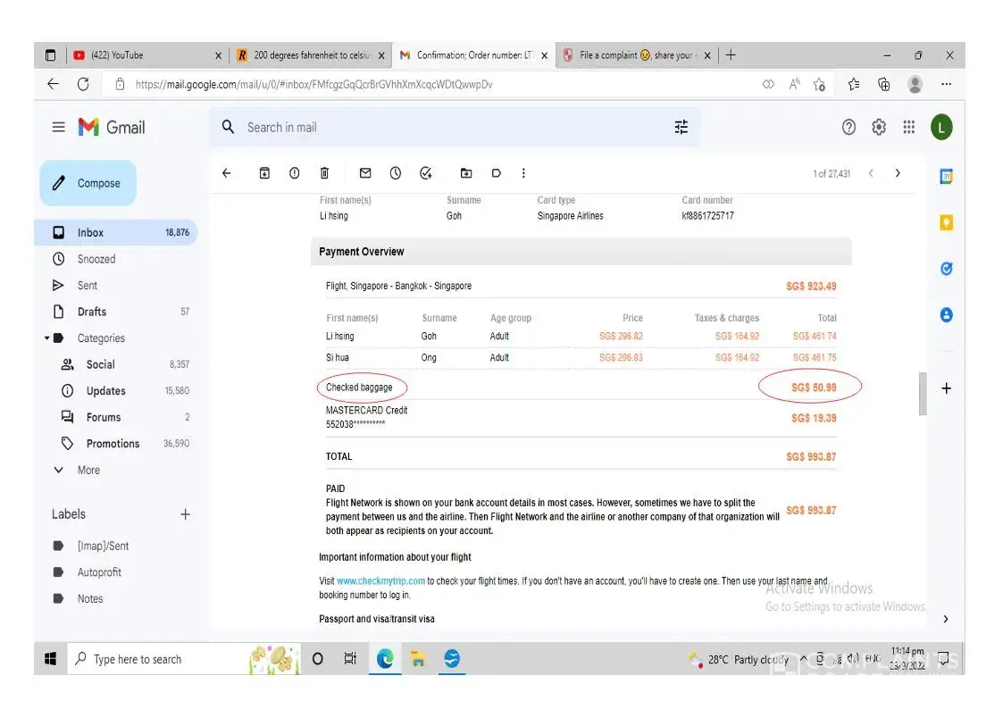 FlightNetwork.com checked luggage price differ from pre payment and post payment