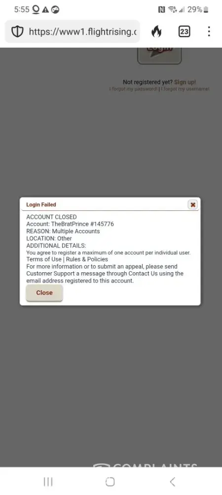 - FlightRising's complaint resolution process is inadequate and ineffective. The support team lacks customer service skills, training, and resources, resulting in only 0% of 2 complaints being resolved.