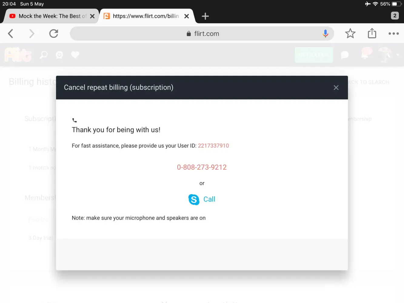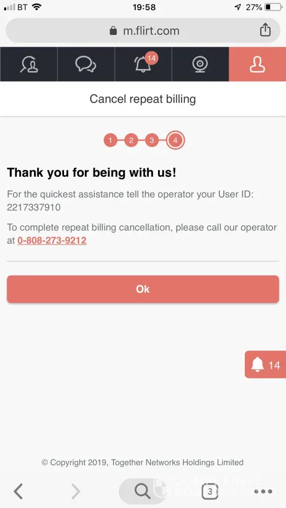 i was using maturedating on a three day pass and read that i would be charged automatically at the end of that period, i cancelled this and was given a weeks free membership to flirt.com, which i didnt want and didnt use and certainly didnt ask for... only to find out the sneaky [censored] are going to charge me for THAT..trying to ring their number which you have to do to cancel subscriptions leads only to a dead line tone. i want the account cancelled and no payment taken, as i didnt want this and sure as [censored] didnt ask for it, it was just given to me when trying to cancel from another scam ridden dating site