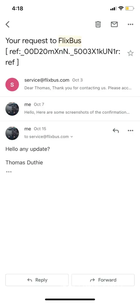 We received a simple mail of flixbus announce that our trip to return back home was cancelled. They programmed automatically another trip for us in the next day. It was so hard to get their customer, they said it was normal and we must pay for hotels to stay at night but they are not sure if there's a refund. We paid for alternative transportation to get back home. flixbus doesn't reply to my mail, formulas was full filled but they don't care to reply.