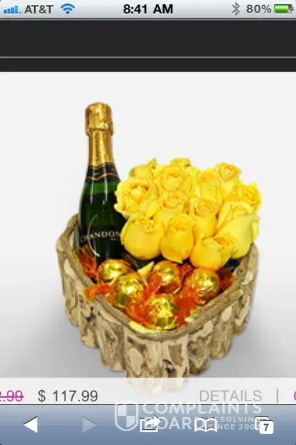 I ordered yellow roses, a bottle of champagne, and truffles. They sent a bottle of champagne, six DAISIES, and chocolate covered cookies, all for $140.00. You can compare pictures yourself.