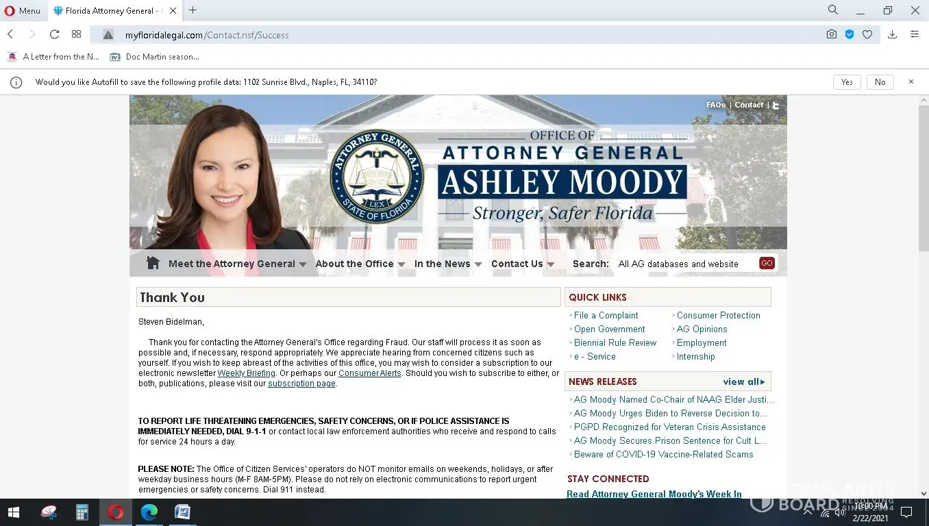 I am William Ellis, 5688 Oakhurst Dr., Seminole, Fl 33772